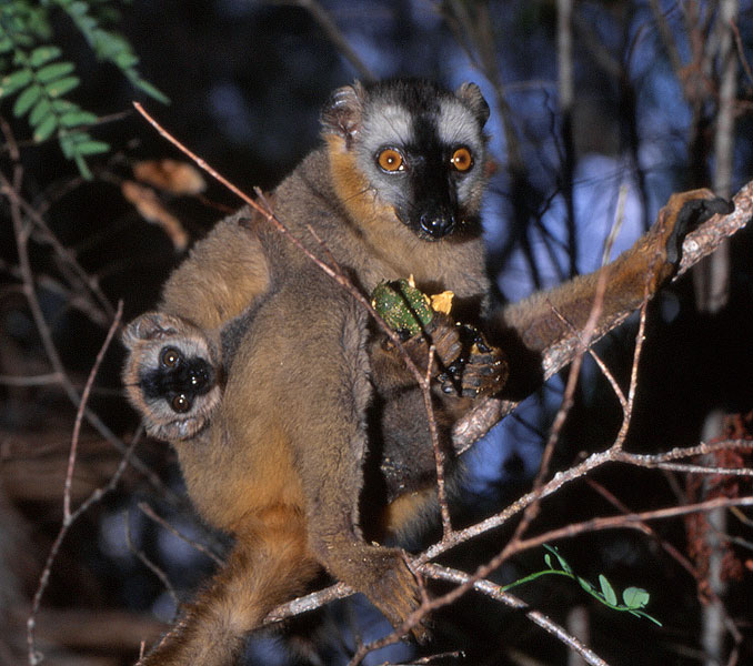Redfronted lemur, female with pup